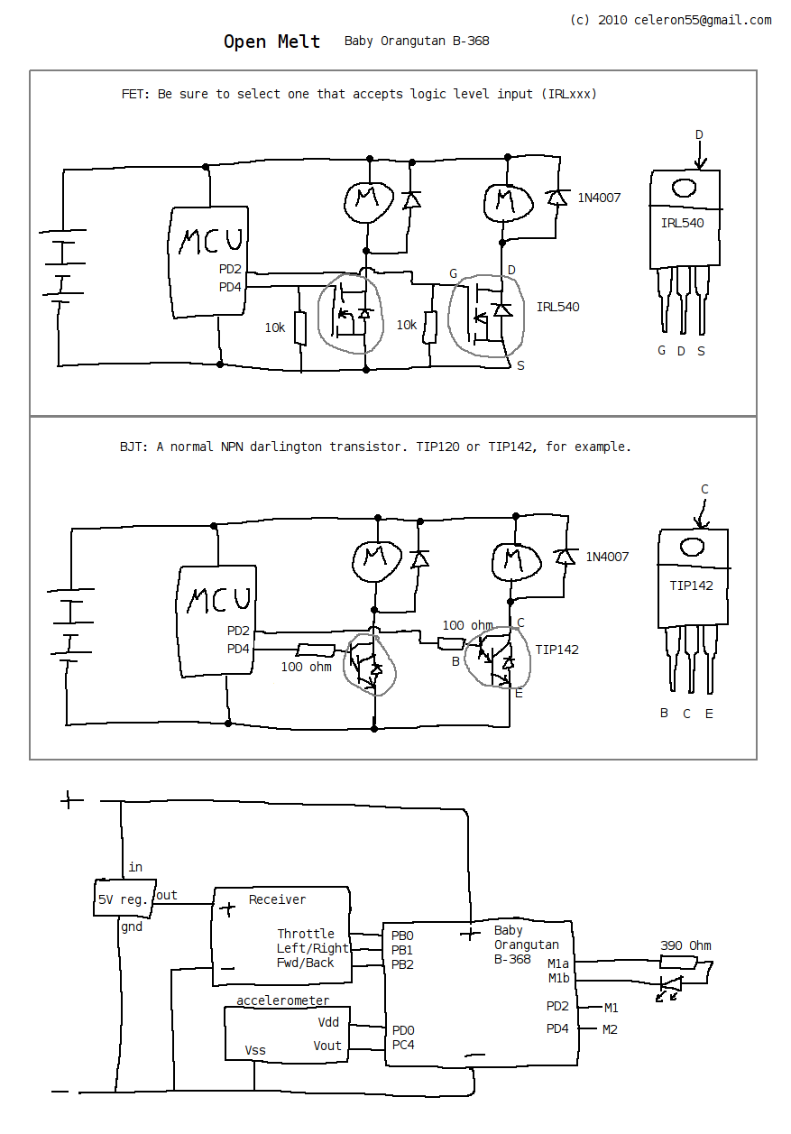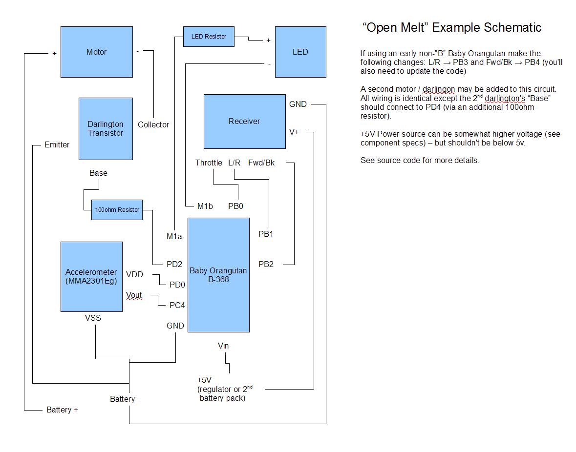 Open Melt is an open-source translational drift (aka "melty brain") robotics project developed by Rich Olson for the "Melty B" series of combat robots.